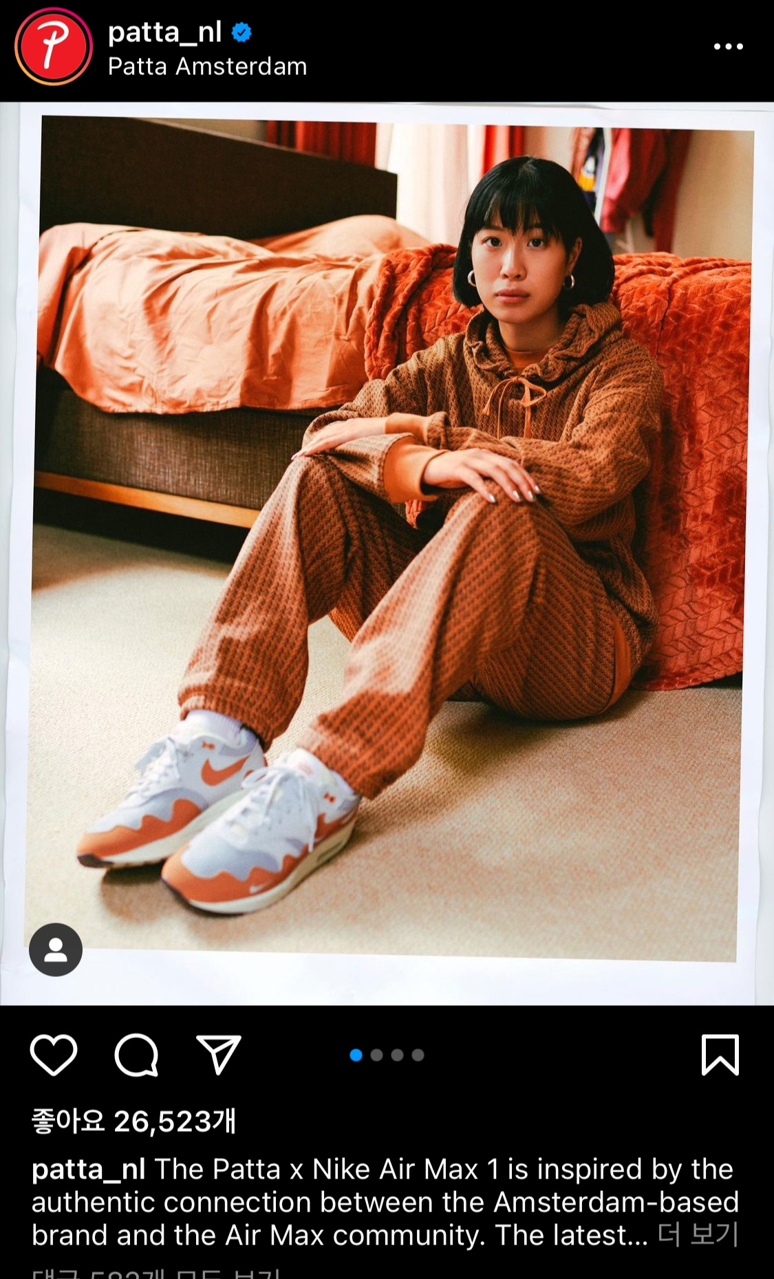 Patta 인스타그램에서 먼저 모델 착용 사진이 공개되어서