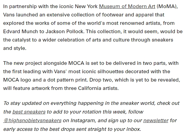 마지막으로 지난 게시글로 소개드렸던 HIGHSNOBIETY의 <VANS x MOCA>의 게시글에서